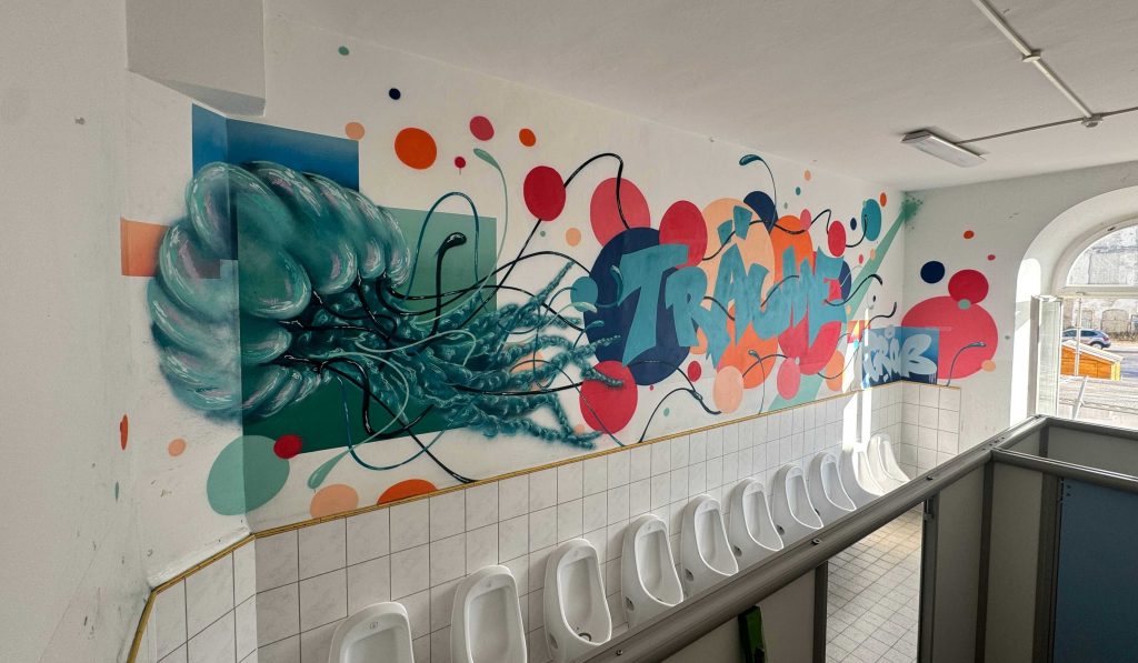 Wandgestaltung Jungentoilette in der St. Georg Schule, Augsburg